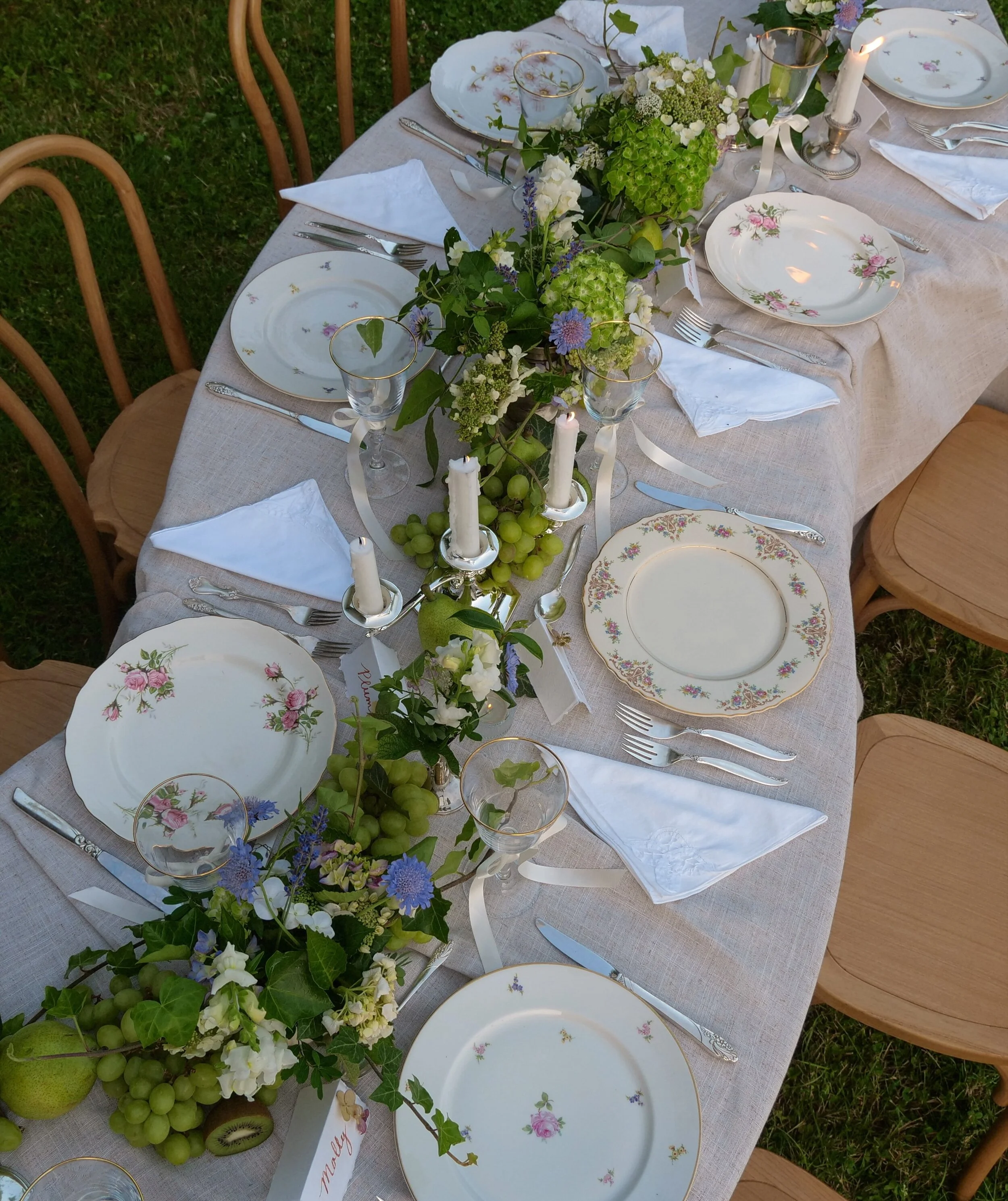 Specializing in full-service tablescapes for intimate gatherings, we use a mix of heirloom-quality dinnerware, fresh blooms, and thoughtful details to create settings that feel as special as they look.